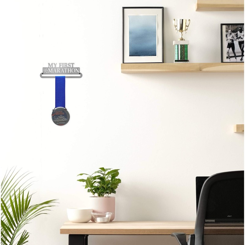 Allied Medal Hangers - My First 1/2 Marathon - Single Medal Holder (6'' Wide with 1 Hang bar) - Book Antiqua/Book Antiqua Negative - Multiple Variations Offered!