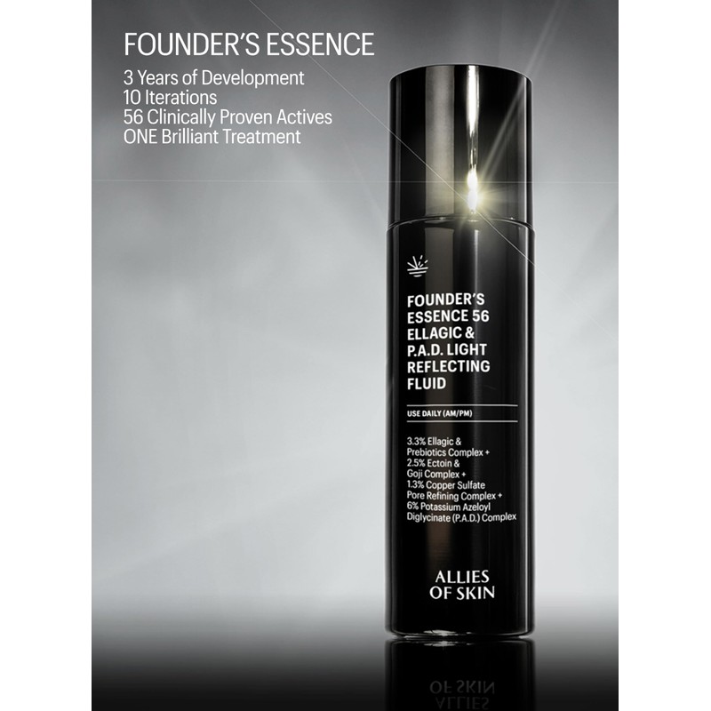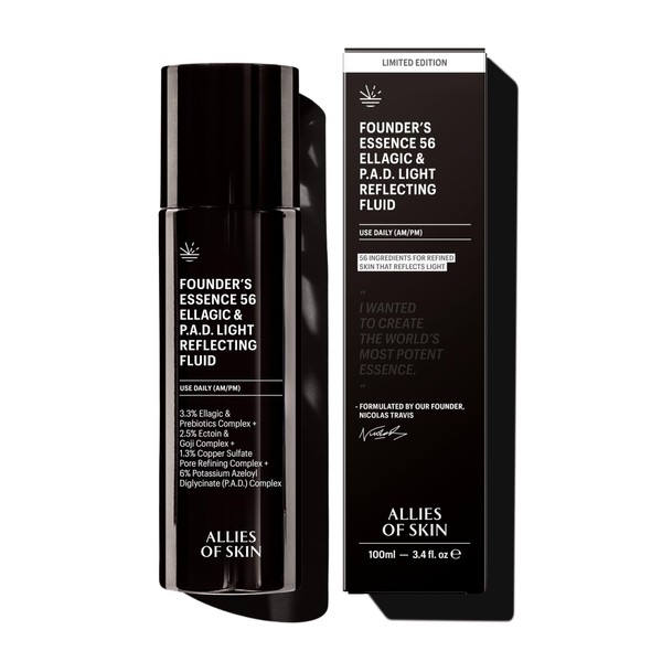 Allies of Skin Founder's Essence 56 Ellagic & P.A.D. Light Reflecting Fluid | Daily Use AM/PM | Multi-Complex Formula for Refined Skin (3.4 fl oz)