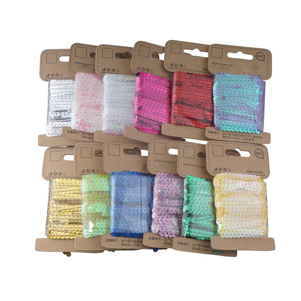 ALLinONE Mixed 12 Colors 5mm Flat Sequin Trim String Sequins for DIY Craft Embellishments