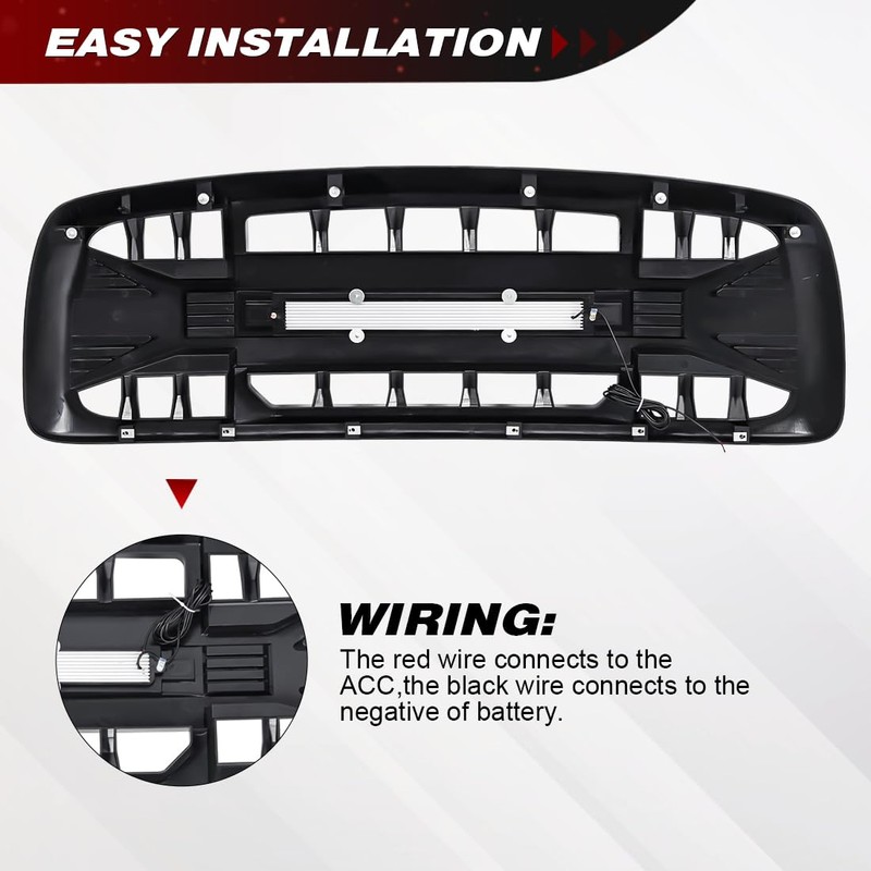 - LED Light Bar: This front grille features a built-in light bar; It not only gives your vehicle a rugged, modern look but also significantly improves visibility in low-light conditions