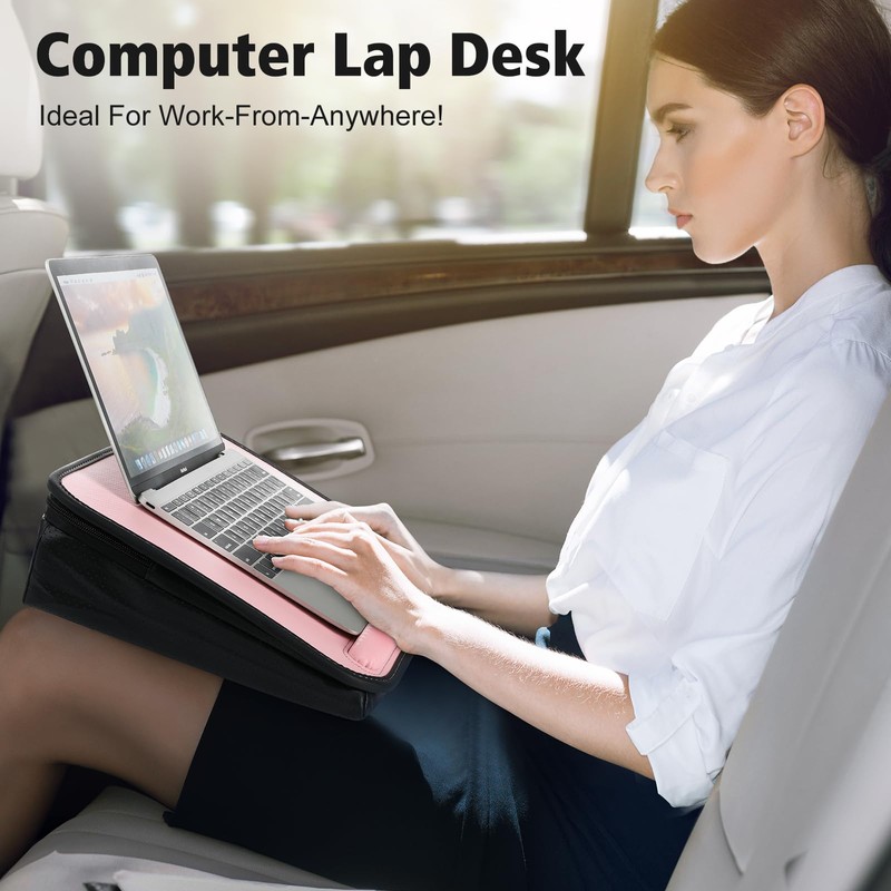 Allinside Laptop Lap Desk with Cushion, Comfortable Lap Desk for Laptop and Tablet PC, Portable Laptop Desk Stand, Lightweight Laptop Storage Bag with Handle, Fits up to 16.2in, Pink