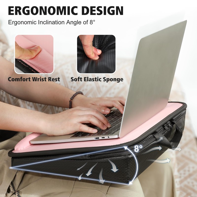 - Ergonomic Cushion: Allinside lap desk features an 8° incline, providing the optimal angle for your laptop to reduce neck, shoulder, arm, and back pain, as recommended by family doctors. Suitable for adults and children to work or study comfortably on beds or sofas.