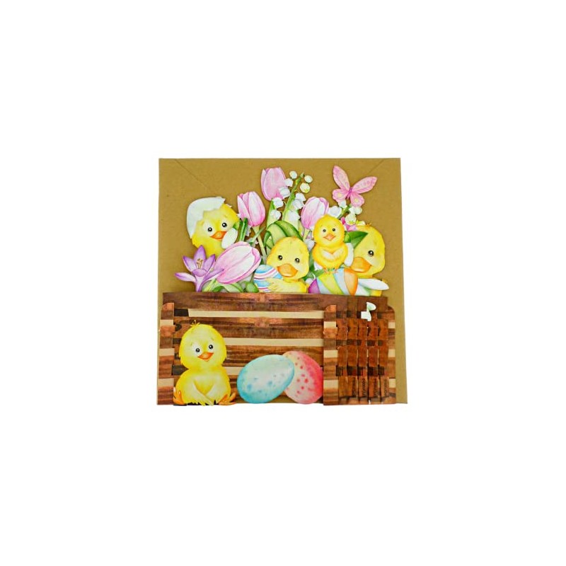 Alljoy Design 3-D Pop Up Stacks Easter Card - CHICKS IN A BASKET