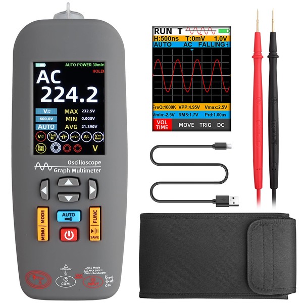 - 3-in-1 Handheld Multifunctionality Combines the capabilities of an oscilloscope, digital multimeter, and voltage tester into a compact and portable device, making it the ultimate tool for professionals and DIY enthusiasts who require versatile and reliable electrical diagnostics on the go
