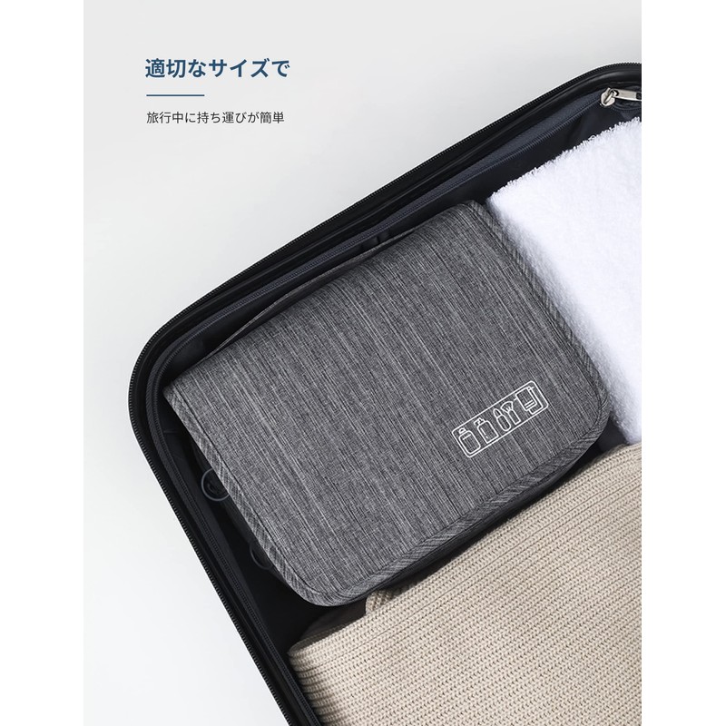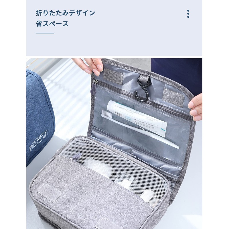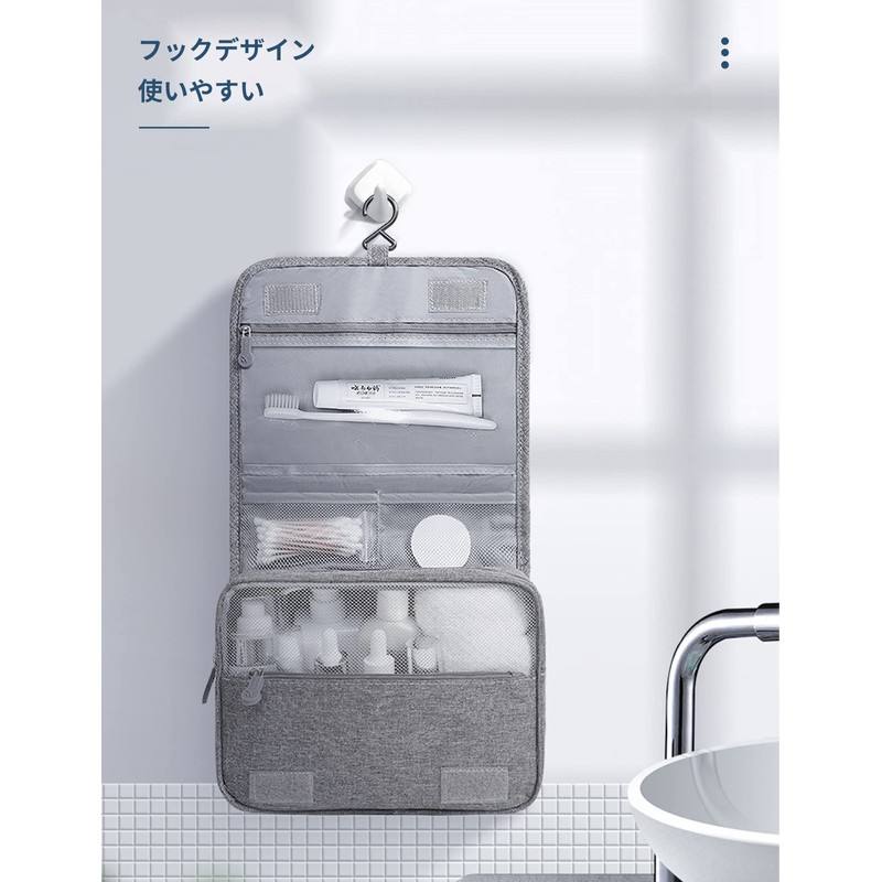 ALLMIRA Travel Pouch, Hanging Pouch, For Travel, Toiletry Bag, Large Capacity, Waterproof, Includes Hooks, Travel Bag, Stylish, gray