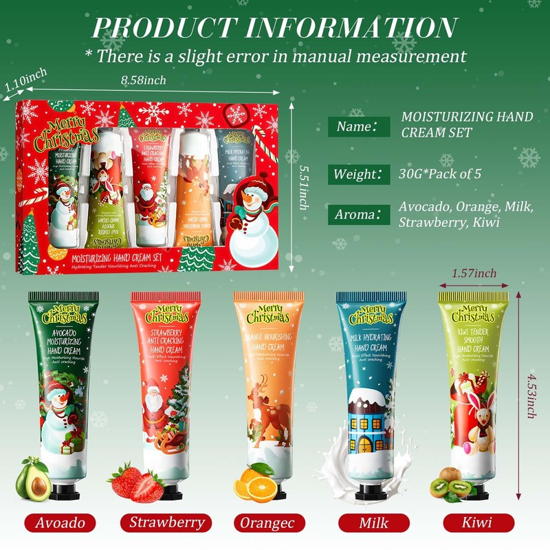 - [Mini Christmas Gift]:A cute and original Christmas gift box, specially designed for Christmas and perfectly matches the Christmas holiday atmosphere. The outer packaging of the product and the packaging of the hand cream are made of different cute little Christmas elements people who cannot put it out of their hand. It can also be used as an office, class or group gift.