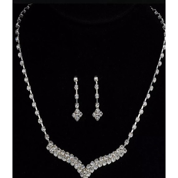Alloy WOMENS FASHION WATER DROPLETS FLOWER ALLOY RHINESTONES EARRINGS/ NECKLACE SET