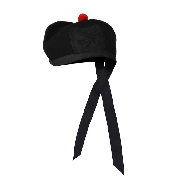 Allsafe Traders Scottish Black Glengarry Hat with Red Pompom (59 cm, Plain Bl...
