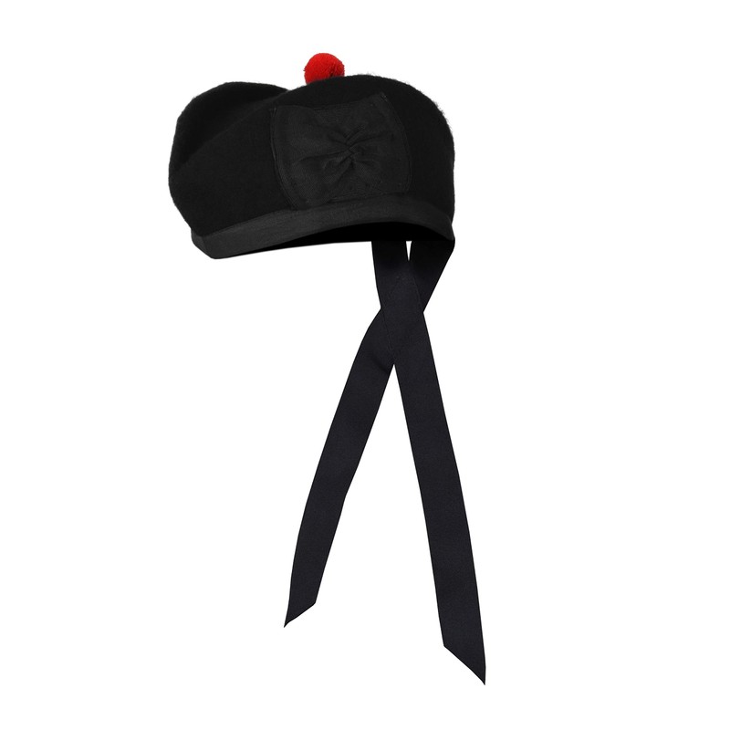 Allsafe Traders Scottish Black Glengarry Hat with Red Pompom (59 cm, Plain Black)