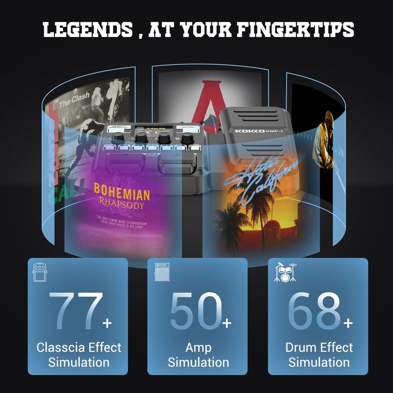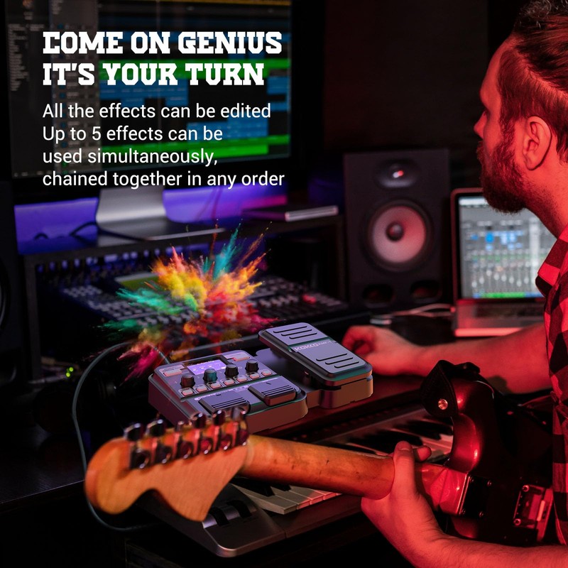 - 8 EFFECTS MODULES:Our MG-100 guitar pedal offers all guitar effects, including a variety of distortion, compression, modulation, delay, reverb, amplifier, and cabinet models. Each module has several effects, covering 58 effects in total; Up to 8 effects can be used simultaneously.
