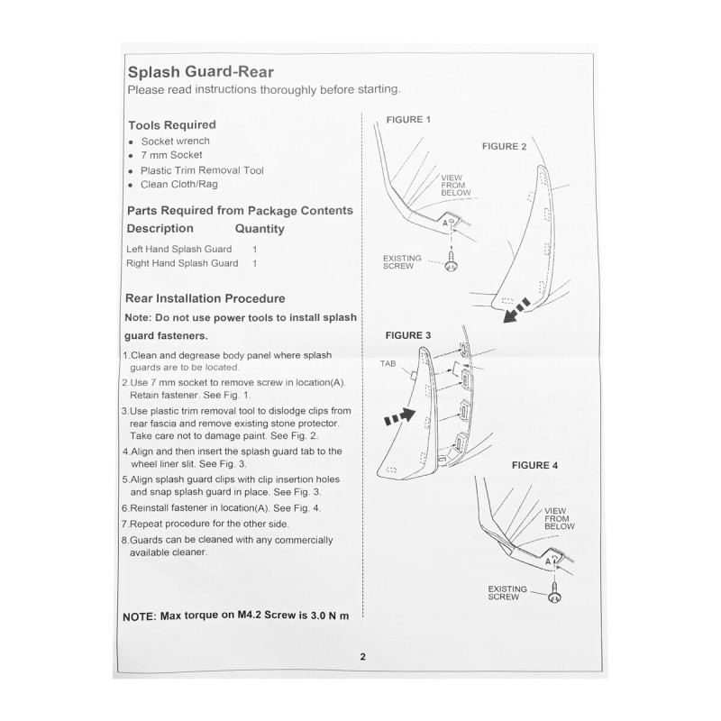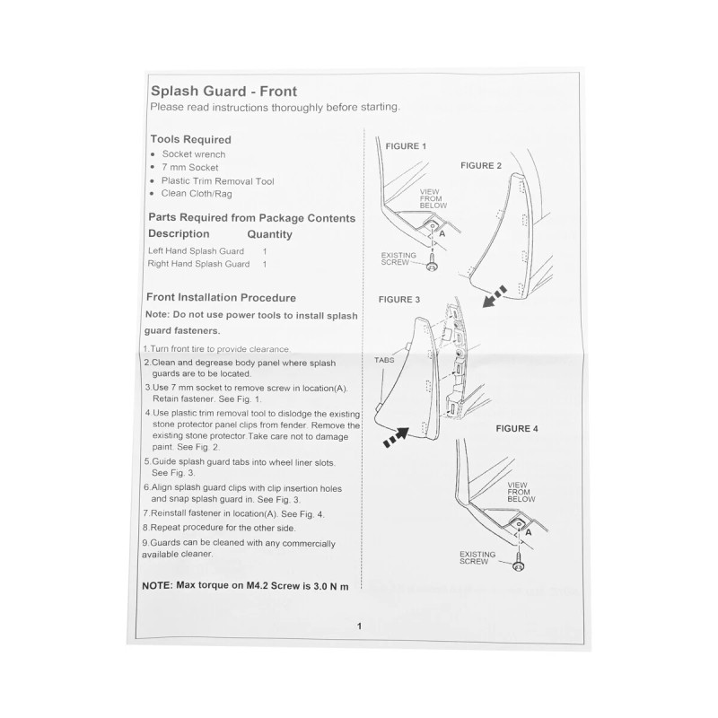 1. The Splash guard prevents any debris from directly entering the wheel well and is almost twice the size of the factory generic splash guard.