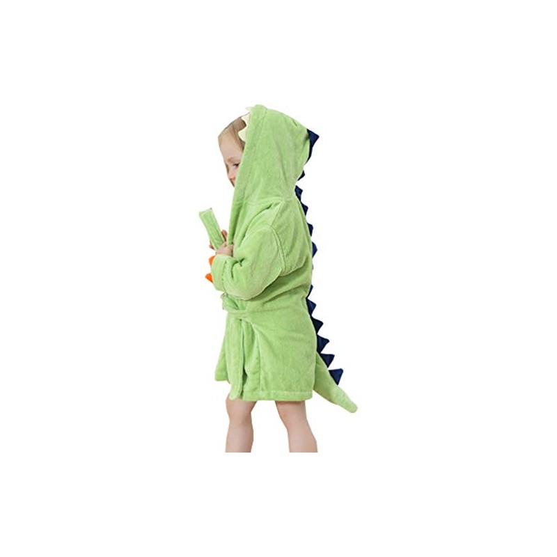 Alltops Little Boys Girls Cotton Towel Bathrobe Cartoon Dinosaur Hooded Bathing Robe 1-6Y