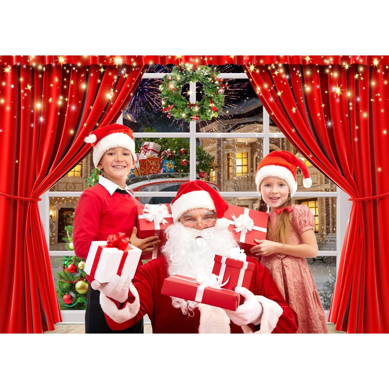 Alltten 7X5FT Christmas Backdrop Winter Xmas Outside Window Firework Scene Backdrop Christmas Party Decorations Backdrop Family Xmas New Year Party Supplies F102