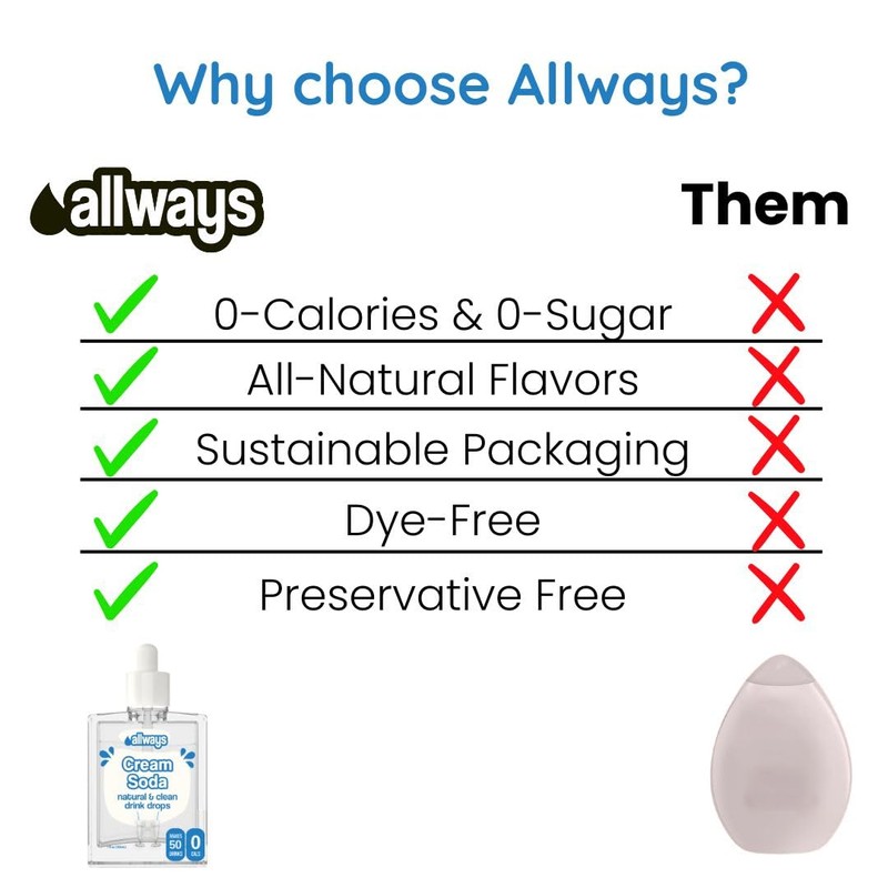 - All-Natural Water Enhancer: Allways made with all-natural ingredients and sweetened with monk fruit, these zero-calorie, zero-sugar natural water enhancer drops turn your drink into a sweet escape that’ll make your taste buds do a happy dance without the sugar crash.