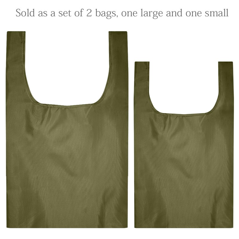 allydrew JoliBag Nylon Reusable Grocery Bag, 2 Pack, Olive