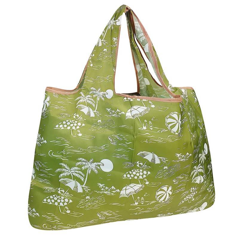 allydrew Large Foldable Tote Nylon Reusable Grocery Bag, Green Paradise