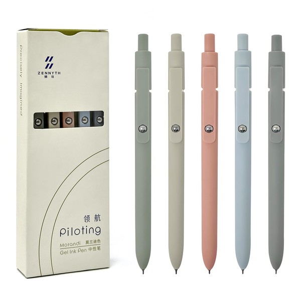 allydrew Smooth Retractable Black Ink Gel Pens, 0.5mm Fine Point, for Home Office Work (Set of 5), Morandi