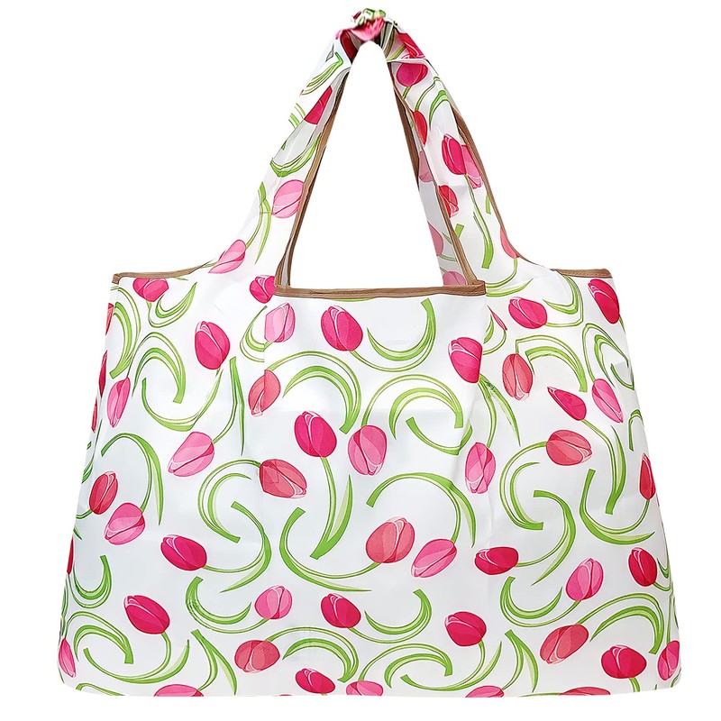 allydrew Unisex's Large Foldable Tote Nylon Reusable Grocery Bag, Pink Tulips