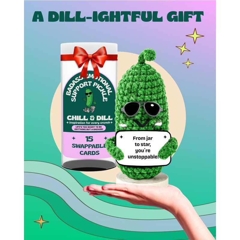 Almacura Premium Emotional Support Pickle Gift - 15 Swappable Motivational Cards and Print Your Own Custom Messages QR link – Funny Giftable for Pickle Lovers, Friends, Coworkers