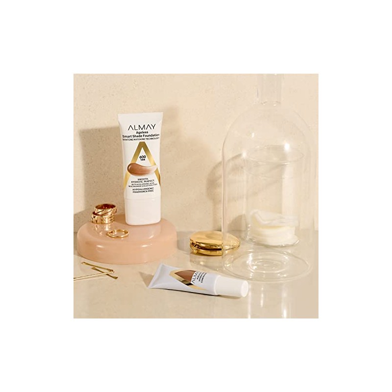 Almay Almay Anti-Aging Foundation, Smart Shade Face Makeup with Hyaluronic Acid, Niacinamide, Vitamin C & E, Hypoallergenic-Fragrance Free, 600 Tan, 1 Fl Oz (Pack of 1)
