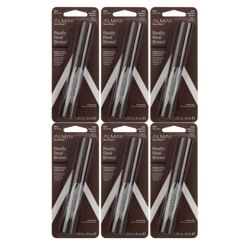 Almay Brow Styler Brow Mascara - Medium Brown, Pack of 6