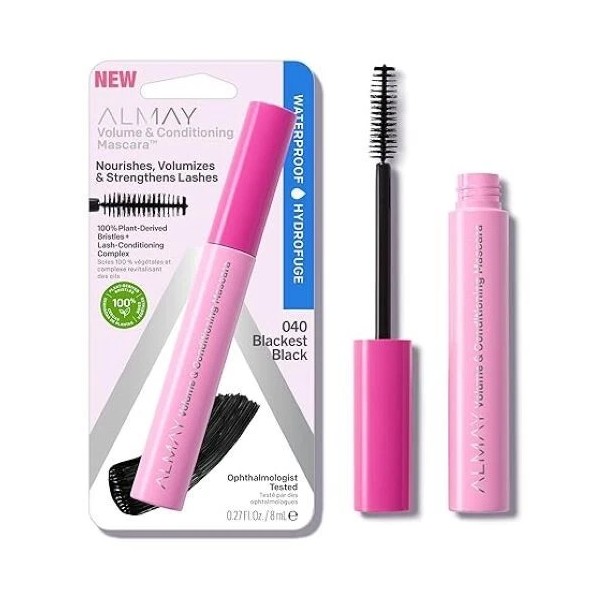 Almay Volume & Conditioning Mascara, Hydrating All Day Wear, 40 Blackest Black Waterproof, 0.27 fl oz