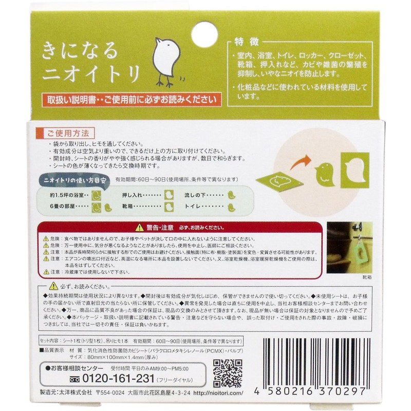 • Material: Vaporization digestive antibacterial and mildew resistant sheet (Parachloromethylenol (PCMX), Pulp)