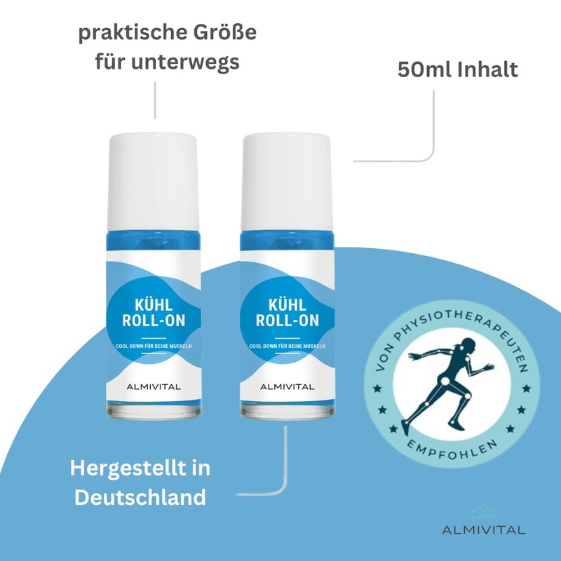 ALMIVITAL Set of 2 Cool Roll-On to Go, Natural Refreshment for Muscles, Invigorating Menthol Provides Long-Lasting Cooling Effect, Soothing After Sports & Physical Activity, 50 ml Each