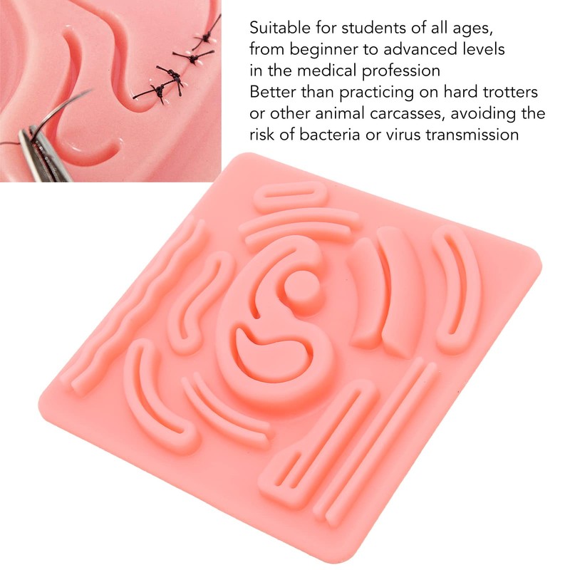 - HERIDAS PRECORTADAS: la almohadilla de simulación de sutura laparoscópica de silicona presenta texturas vívidas y 12 tipos diferentes de cortes y laceraciones comunes con irregularidades.