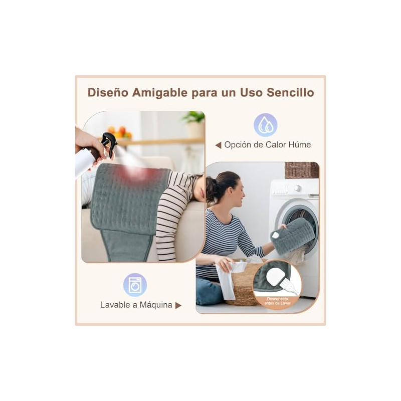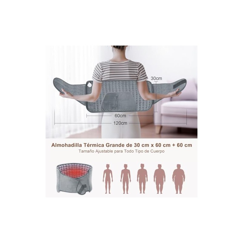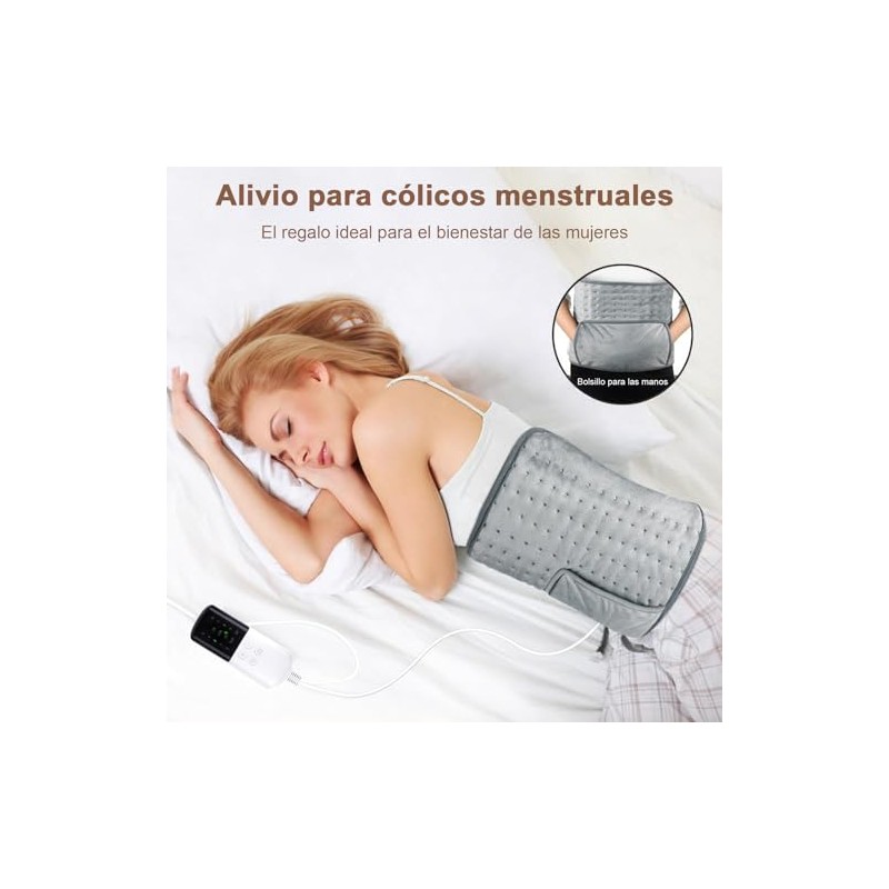 Almohadilla Trmica para Alivio del Dolor de Espalda Clicos Menstruales,Compresas Calientes Terapeuticas con Apagado Automtico de 4 Temporizadores y 6
