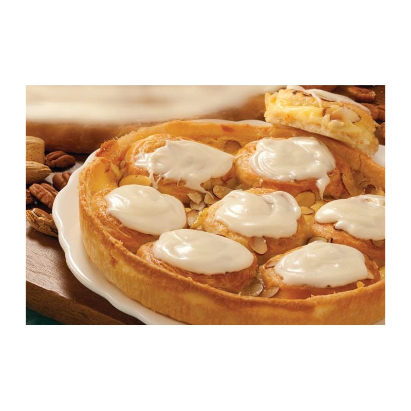 creamy almond filling, smooth custard, and then baked into seven spiraled