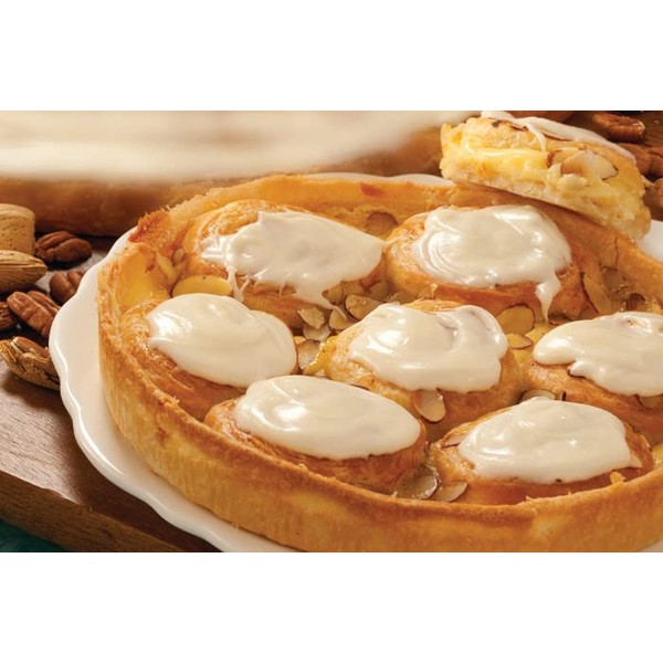 creamy almond filling, smooth custard, and then baked into seven spiraled