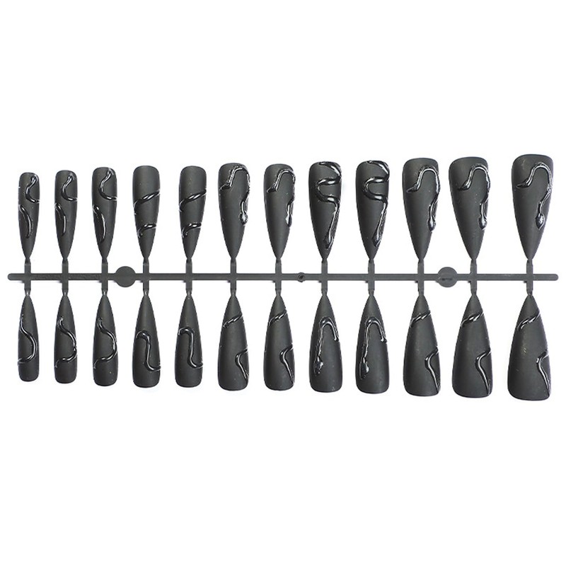 Almond False Nails Long - 24pcs Fake Nails with 3D Snake Nail Tip - Press on Nail Glossy Full Cover Fake with Glue - Black Stick on Nails for Women Girls Valentines Days Nail Art