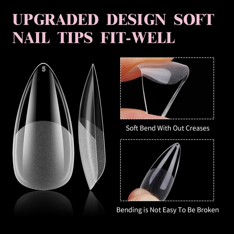 - Clear false nails: Our nail extension kit are made of a soft gel material that is flexible and does not wrinkle when folded. These advantages make the nails tips less prone to breakage