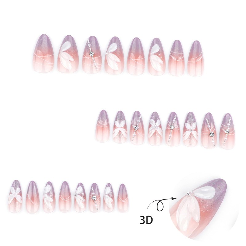 Almond Press On Nails Handmade Medium Length Cat-Eyes Fake Nails with Butterfly Designs Rhinestone Nails Press Ons 3D Gradient False Nails Full Cover Acrylic Artificial Glue Stick On Nails for Women