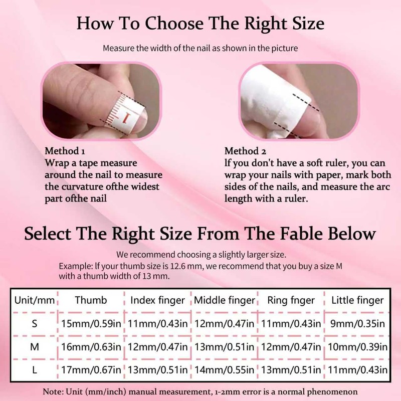 - 10Pcs Full Set – With multiple sizes included, you’ll get the perfect fit for natural-looking, glamorous nails instantly!