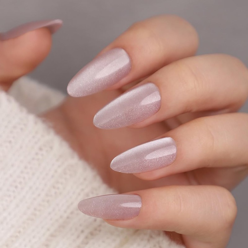 Almond Press on Nails Silver Almond Nails with Glitter Fake Nails