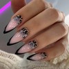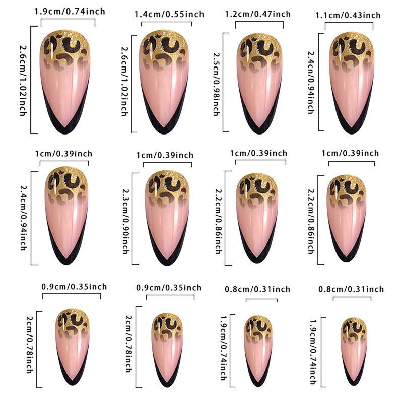 Almond Tip False Nails - Press On, Medium Black French, Leopard, Glossy, Reusable, 24Pcs