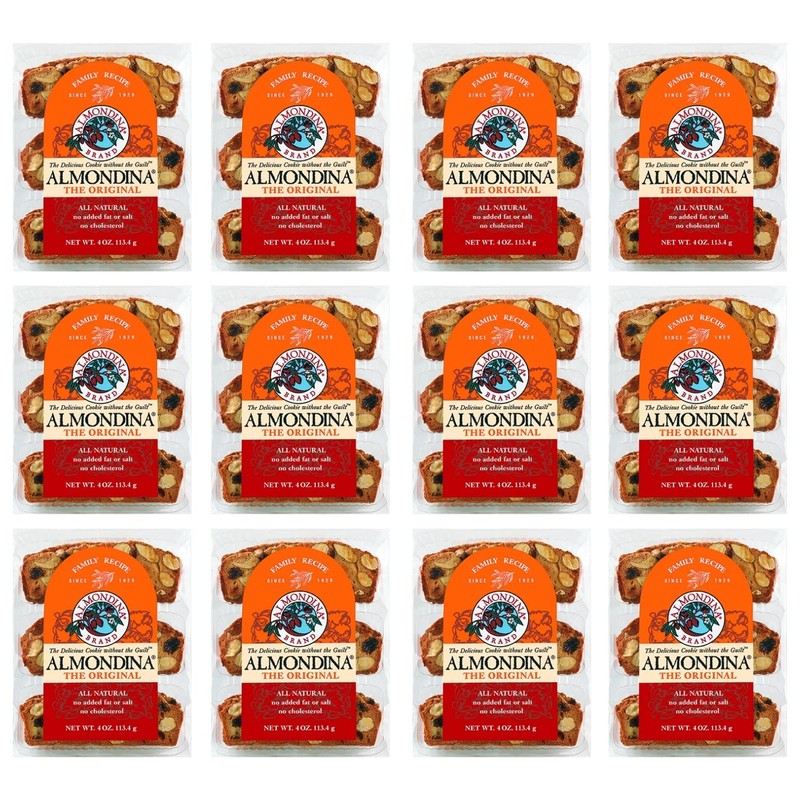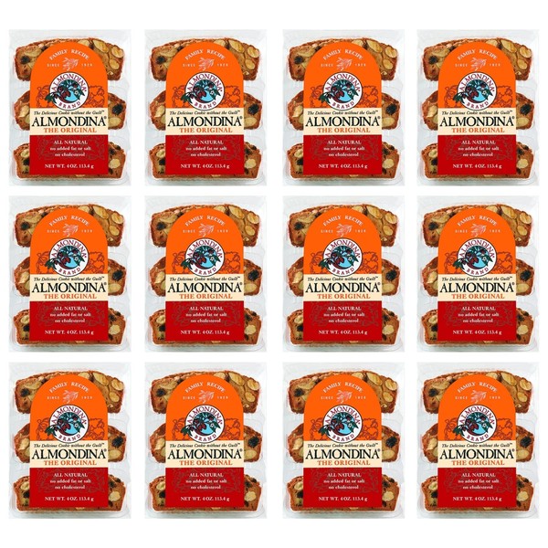 Almondina Almond Cookies, Original Flavored Thin Biscotti Cookies, Non Dairy and Kosher Snack Assortment for Gift Basket or Stocking Stuffers, Sweet and Crunchy Biscotti Snack for Gifting, 4oz Pack of 12