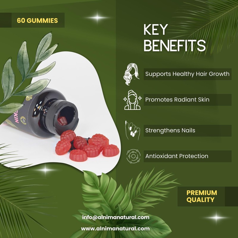 ALNIMA ALNIMA Hair, Skin & Nails Complex C Collagen + Biotin with Essential Vitamins & Zinc C Halal Certified C Beauty Support for Women C 60 Gummies C Made in USA
