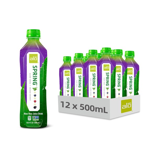 ALO Aloe Vera Juice Drink | SPRING - Aloe Vera + Mixed Berry | 16.9 fl oz, Pa...