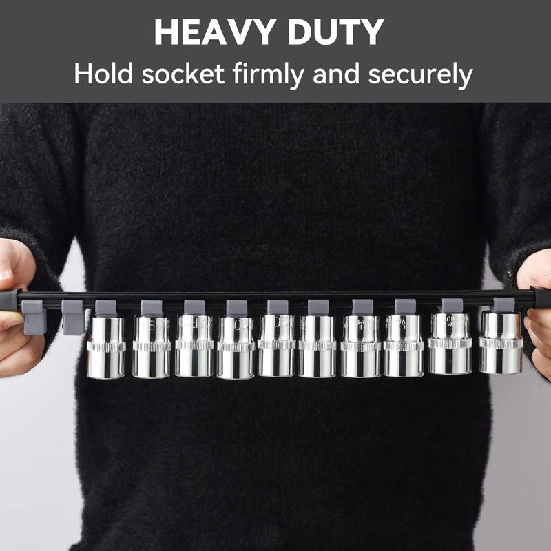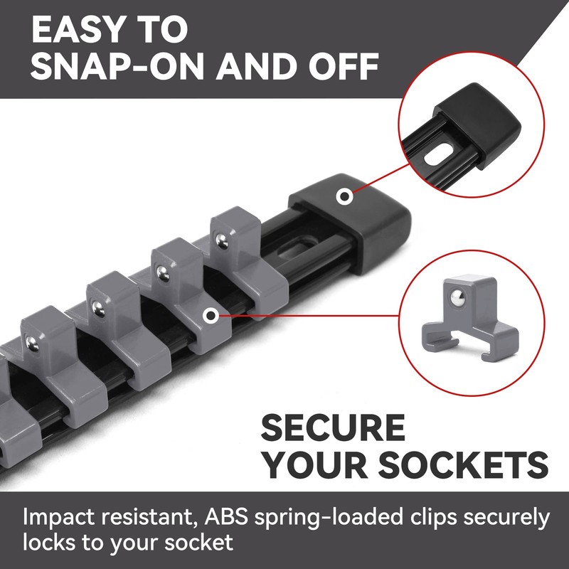 - Removable End Cap Design: Clips can be easily added or removed to meet your DIY needs for multiple sizes on a single rail. Also makes it easier for you to remove the clips to clean the socket rail organizer.
