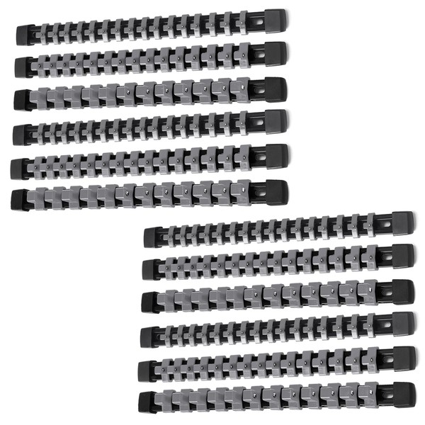 ALOANES 12 PC ABS Socket Organizer,1/2 inch, 3/8 inch, and 1/4 inch Drive Socket Rail Holders, Heavy Duty Socket Racks, Black Rails with Gray Clips