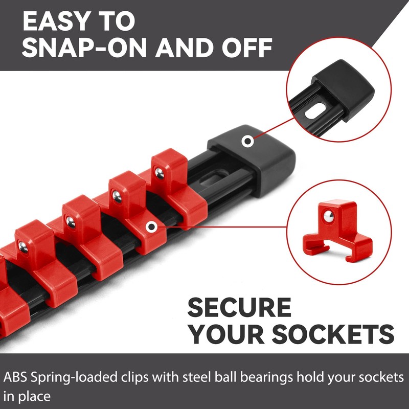 - Heavy Duty ABS Plastic: Made with high-strength, anti-fatigue PP rails and impact-resistant ABS spring clips with anti-abrasion steel ball bearings. The ALOANES socket rail organizer set can hold and secure your sockets under heavy conditions and can withstand multiple, long-term socket insertions and removals.