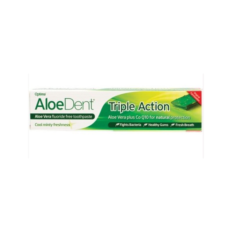 Aloe Dent Triple Action Toothpaste Fluoride Free 100mlOur AloeDent Original Triple Action Toothpaste offers you and your family natural protection against plaque, tartar, cavities, bad breath and gum disease.