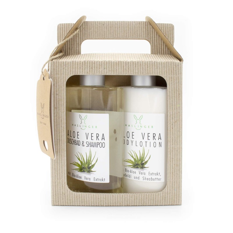 - Product: Aloe Vera shower bath and shampoo and body lotion from Haslinger in gift box, each 200 ml