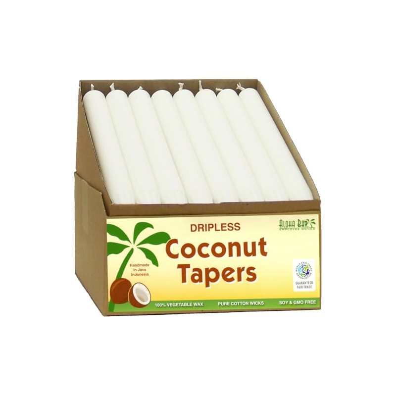 Aloha Bay Coconut Taper Candle – Dripless, Unscented 9 Inches w/ 9-Hour Burn Time & Pure Cotton Wicks for a Clean, Steady Glow for Special Occasions | Unscented | 32-Pack | White