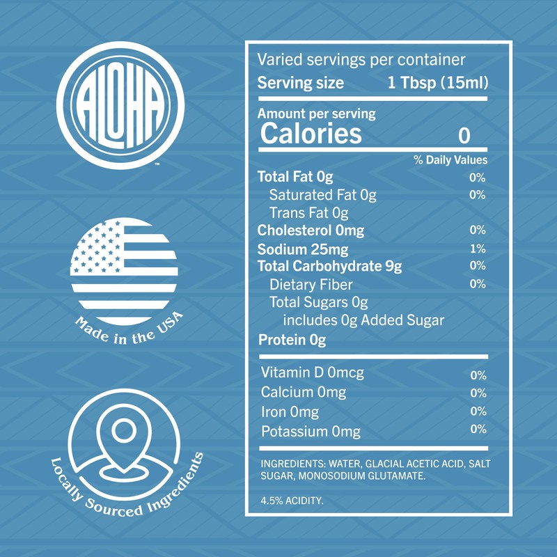 - NO MSG: Our Vinegar is crafted without the addition of MSG. It's important to exclude MSG in our vinegar because it can counteract vinegar-based dishes. Explore the world of Aloha Shoyu and pair this powerful sidekick with your next dish.