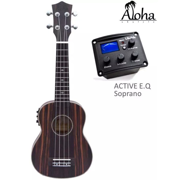 Aloha Ukulele Ebony Wood, Many Sizes, W/Wt EQ (Canadian brand) - Soprano with EQ