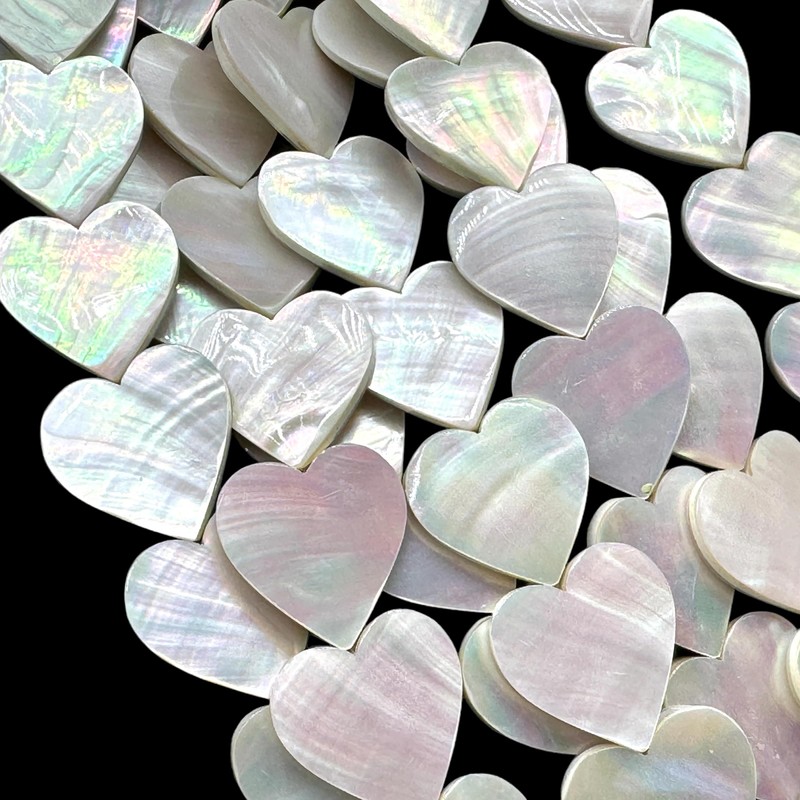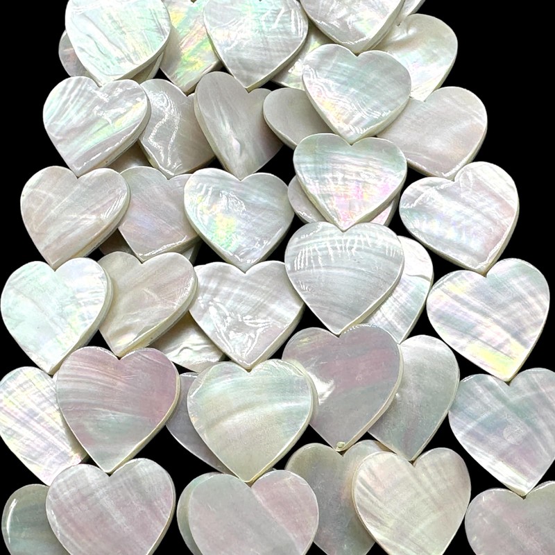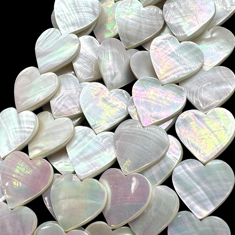 AlohaGemsUSA Silvery-White Nautilus Shell Beads with Superior-Grade Nacre (One of The Most Valuable Exotic Seashells in The World) Hidden-Iridescent-Matrix Heart Shape 25mm (8 Inches Strand- 9 Beads)